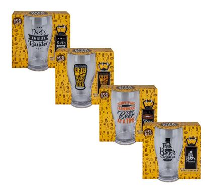 | Description | Beer glass dad & bottle opener set |